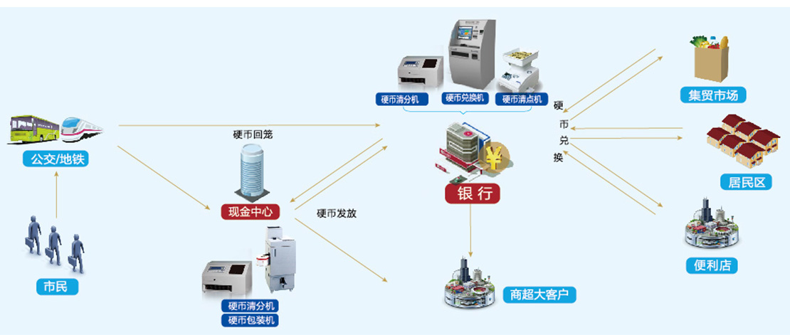 在廳堂/金庫(kù)推出硬幣兌換機(jī)系列產(chǎn)品、硬幣清點(diǎn)機(jī)、硬幣清分機(jī)、硬幣包裝機(jī)產(chǎn)品。