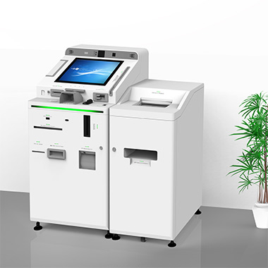 榮鑫科技推出智能低柜“對(duì)公非現(xiàn)綜合版”、“對(duì)公現(xiàn)金綜合版”兩款產(chǎn)品,整機(jī)“L”型設(shè)計(jì)方便柜員與客戶交流和傳遞文件。